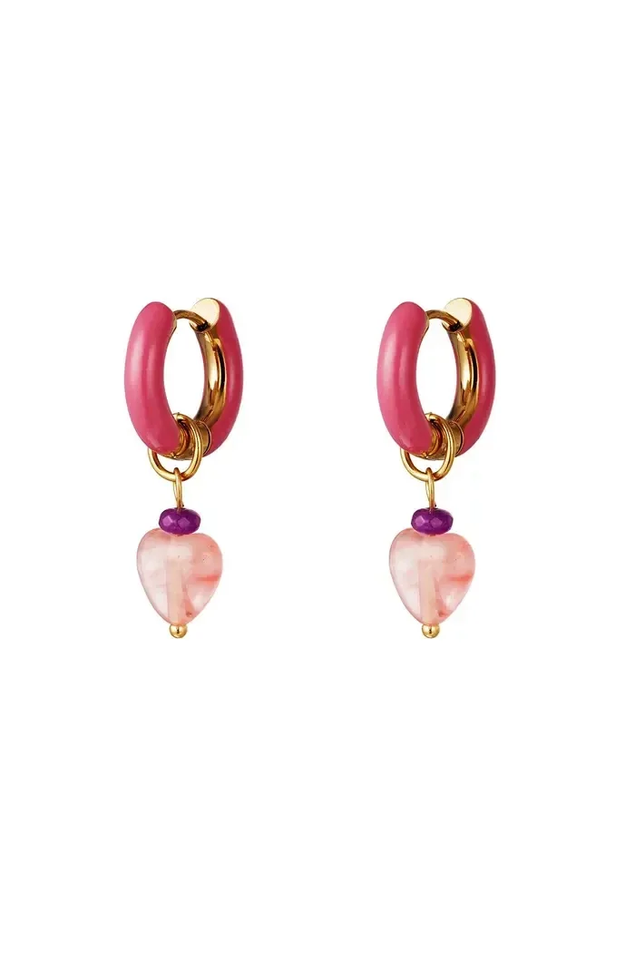 Deze prachtige oorbellen bevatten een gekleurde bedel in de vorm van een klein hartje. De oorbel is gemaakt van roestvrij staal en heeft een emaille plating