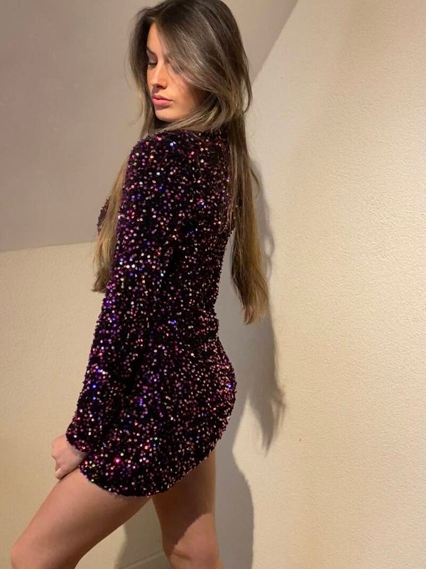 Prachtige paillet jurk! De jurk bevat pailletten die niet kriebelen, met daaronder een zachte velvet onderlaag. De top bevat stretch . Aan de achterkant van de jurk zit een rits om hem mee aan en uit te trekken.