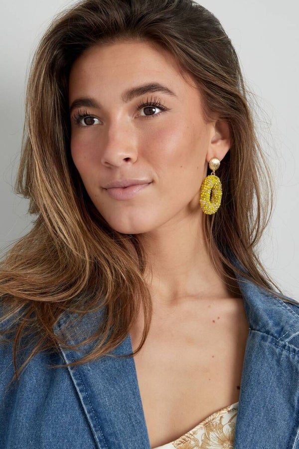 Hoe geweldig is deze discodip oorbel? Een must voor de lente en zomer om jouw look op te fleuren. De oorbel is gemaakt van metaal en kristal. De afmeting is 3 bij 4.6 centimeter.